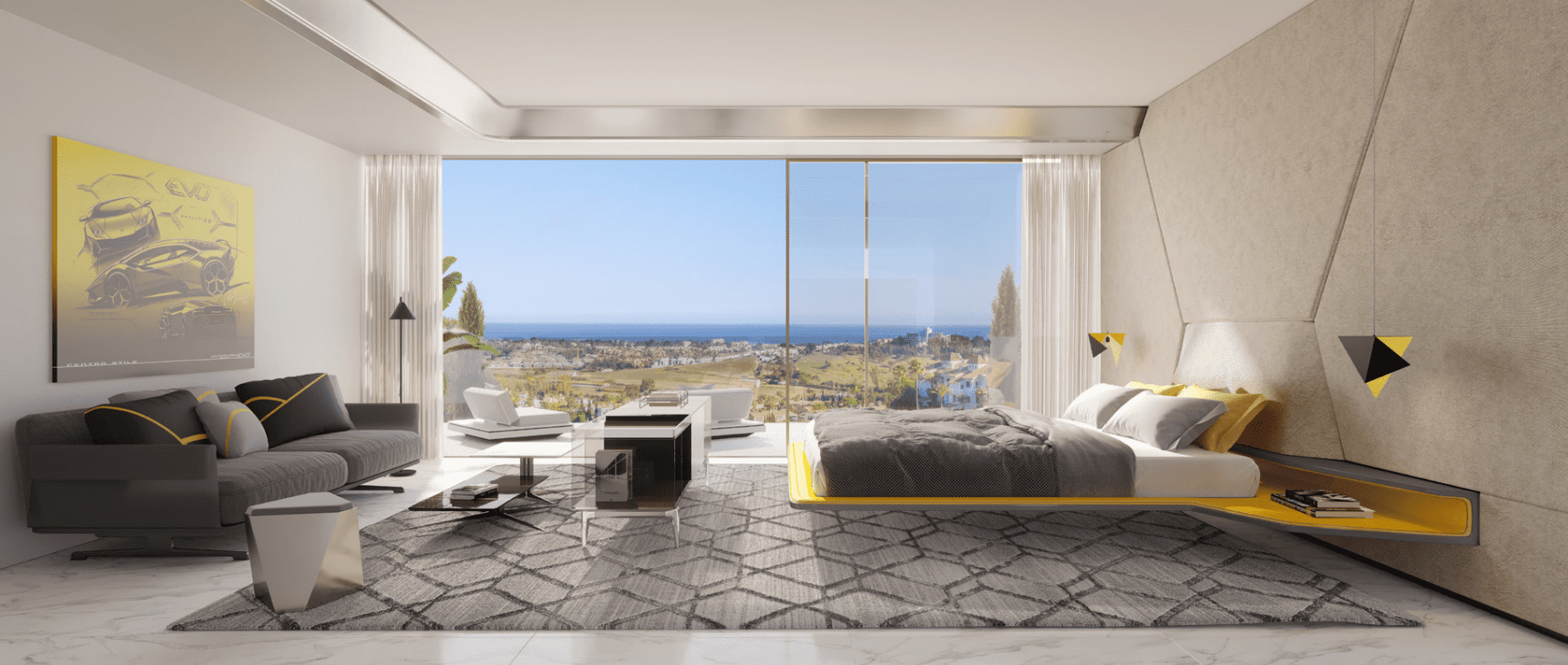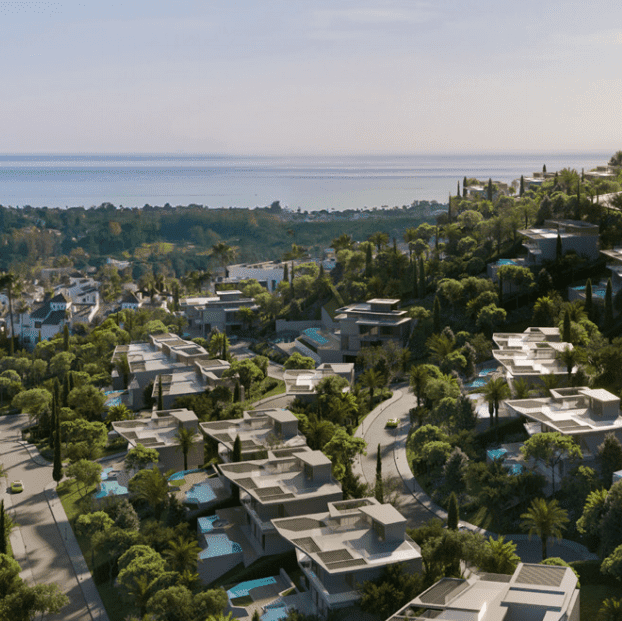 by Automobili Lamborghini is a gated community of 53 high-end villas (Esmeralda, Zafiro, Diamante types), set above Marbella with panoramic sea and golf views. The development blends Lamborghini’s design DNA — bold geometry, precision materials and automotive technology — with ultra-luxury residential services and amenities.