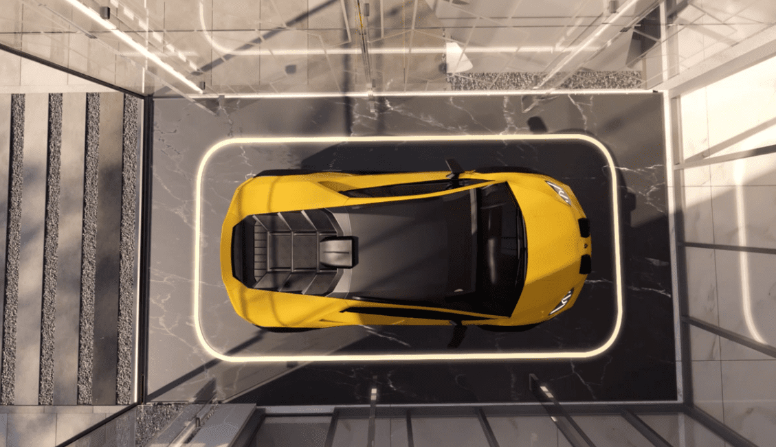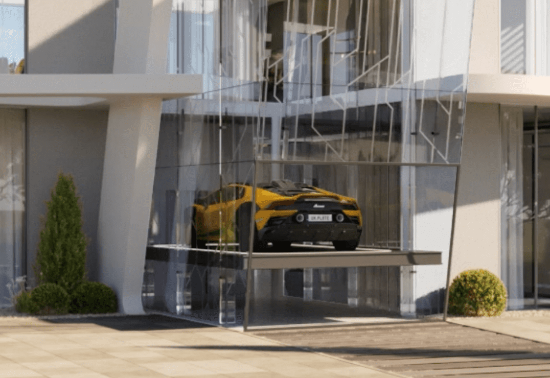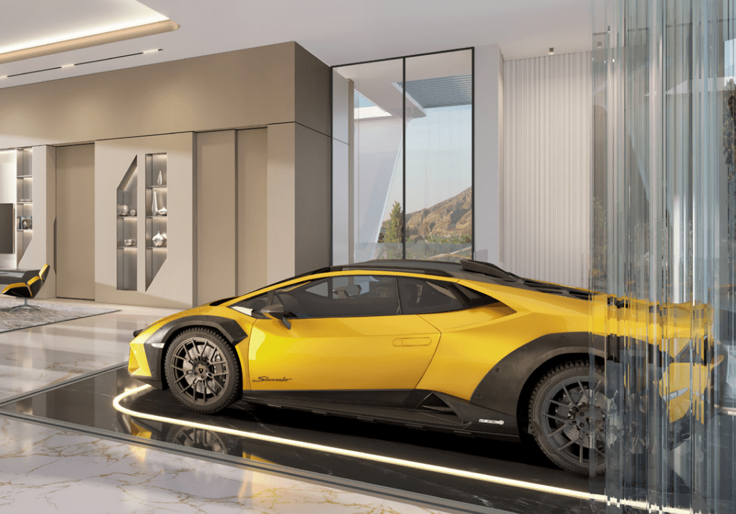 - Private Sky Car Lift / Sky Garage (Painite villas) — Lamborghini technology integrated into living space.