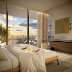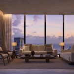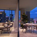 Inside, fully furnished residences range from elegant studios to expansive four-bedroom homes, each finished with refined interiors, smart-home technology, and panoramic views of the Miami skyline and Biscayne Bay. The design emphasizes light, space, and seamless indoor-outdoor living, creating an atmosphere of contemporary luxury.